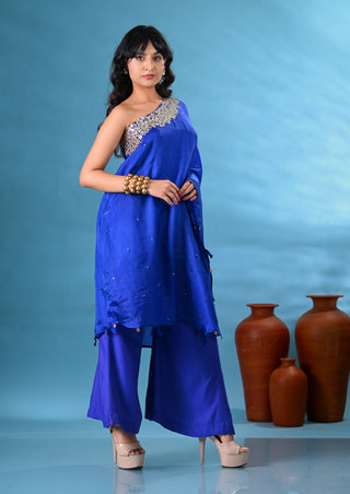 Noori Blue One-shoulder Kurta Set (Set of 2)