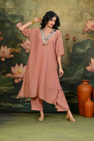 Zuri Light-Pink V-Neck Mirror Work Kurta Set (Set of 3)