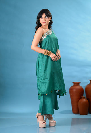 Heer Green One-Shoulder Kurta Set (Set of 2)