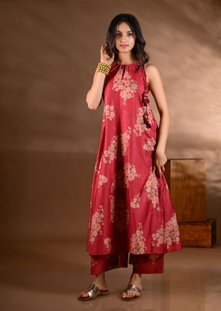 Red Crepe Printed Halter-Neck Kurta Set (Set of 2)