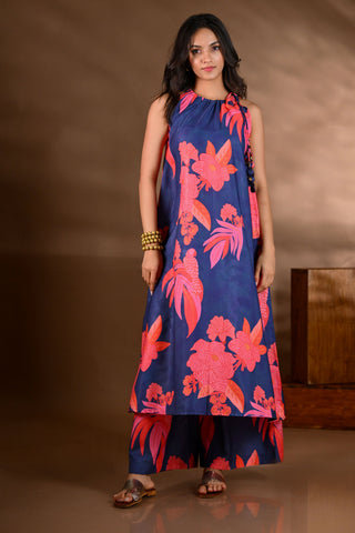 Blue Crepe Printed Halter-Neck Kurta Set (Set of 2)