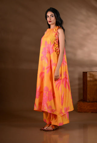 Yellow Crepe Printed Halter-Neck Kurta Set (Set of 2)