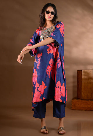 Blue Crepe Printed Mirror-work Yoke Kurta Set (Set of 2)