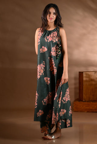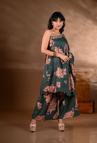 Green Crepe Printed Halter-Neck Kurta Set (Set of 2)