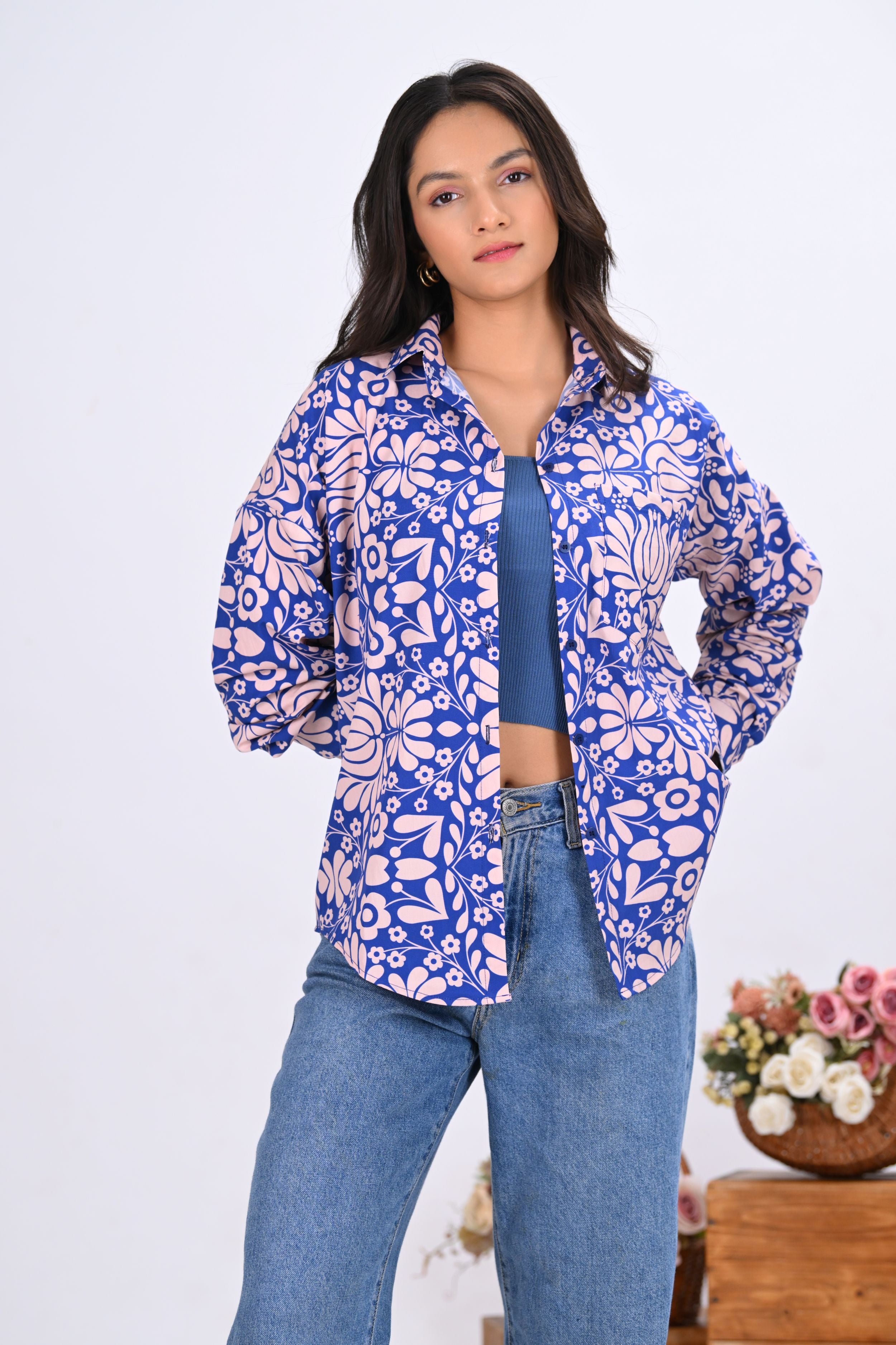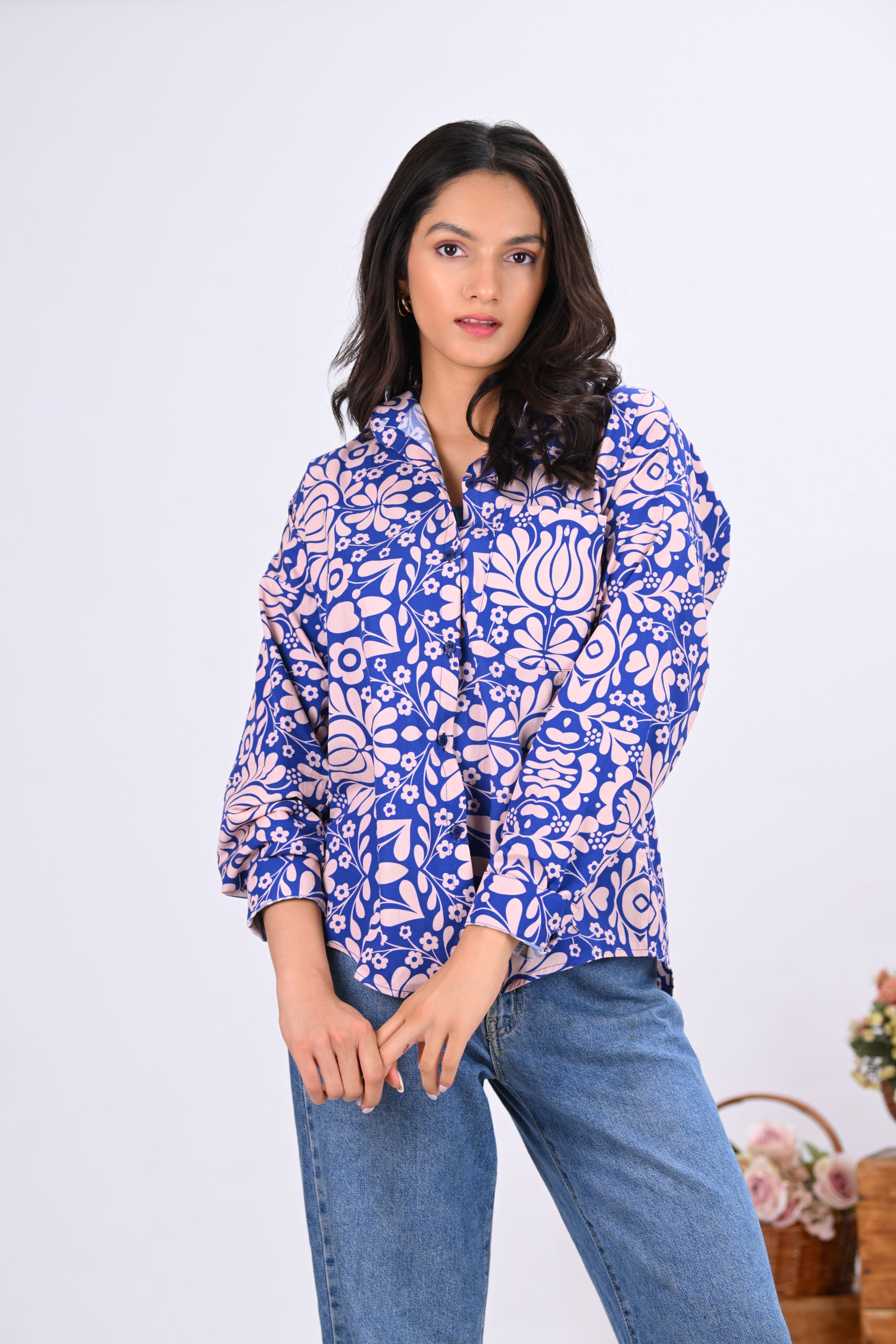 Make a modern statement with this oversized shirt featuring a bold blue and off-white geometric print. Crafted in breathable cotton poplin, it promises all-day comfort with effortless style. Pair it with denim, trousers, or cutoffs — each combo creates a whole new look